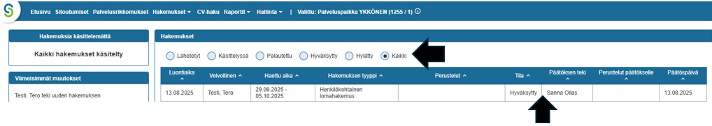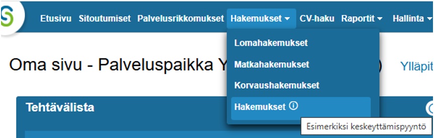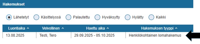 Avaa ”Hakemukset” – ”Hakemukset” päävalikosta.