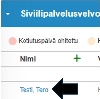 • Näkee hänelle nimettyjen työpalveluspaikkoihin kytkettyjen velvollisten tietoja ja voi ylläpitää teidän tietojaan.