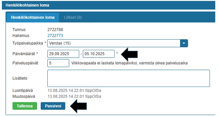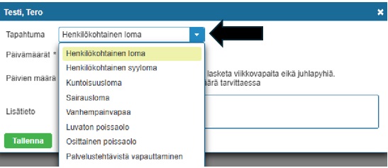 Palveluspaikka voi tarvittaessa sopimuksen mukaan tallentaa henkilökohtaisen lomatapahtuman manuaalisesti Sivariwebiin.