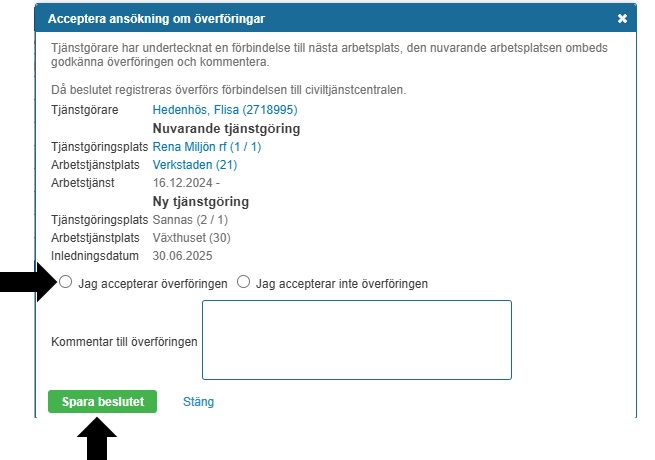 - Se video: Så här godkänner den nuvarande tjänstgöringsplatsen bytet i Sivariweb