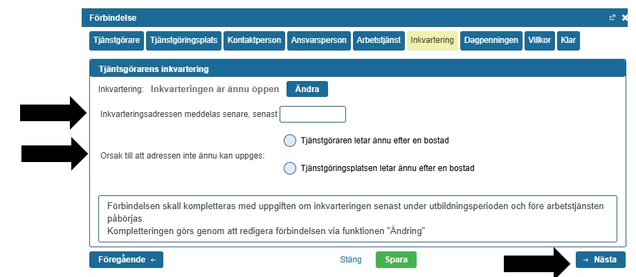 - Inkvartering i bostad som ägs eller hyrs av tjänstgöringsplatsen