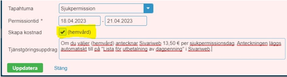 Tjänstgöringsplatsen kan anteckna sjukpermissionen i Sivariweb manuellt om man vill att tjänstgöraren personligen anmäl sin sjukfrånvaro personligen.