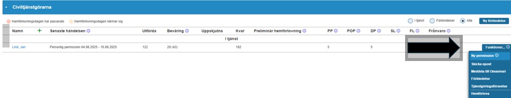 Kom ihåg att anteckna alla tjänstgöringshändelser i Sivariweb före bytet sker. Kontrollera också att alla dagpenningar, matpenningar, arbetsresor och boendekostnader är betalda/på väg till betalning.