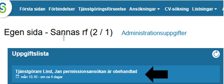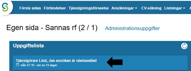 Öppna ansökningen via uppgiftslistan på framsidan i Sivariweb.