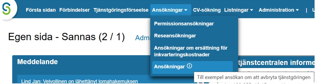 Öppna ”Ansökningar” – ”Ansökningar” i huvudmenyn.