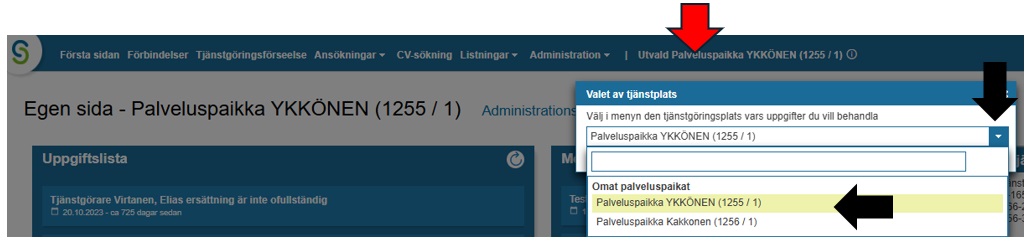 Välj i menyn den tjänstgöringsplats vars uppgifter du vill behandla.
