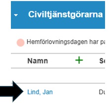 Tjänstgörarens uppgifter försvinner från tjänstgöringsplatsens vy, när hemförlovningsanteckningen är gjord.